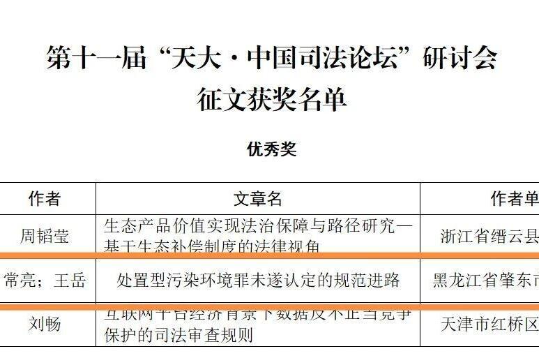 肇東市人民法院1篇論文榮獲第十一屆“天大·中國(guó)司法論壇”征文優(yōu)秀獎(jiǎng)