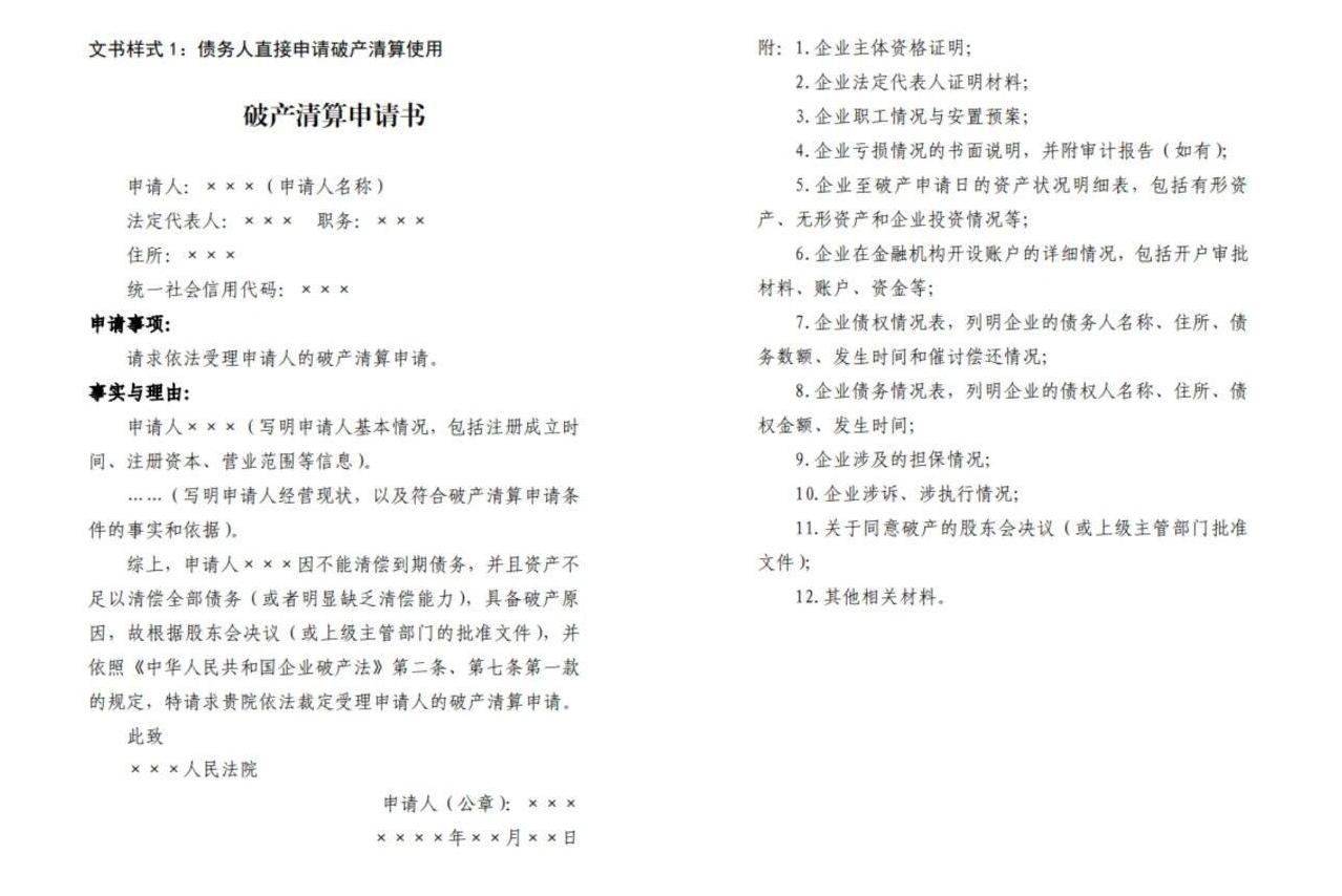 慶安縣人民法院向當(dāng)事人免費(fèi)提供破產(chǎn)申請書格式文本