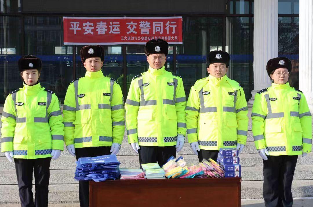 五大連池市公安局于春運啟動日同步開展“平安春運 交警同行”主題宣傳活動