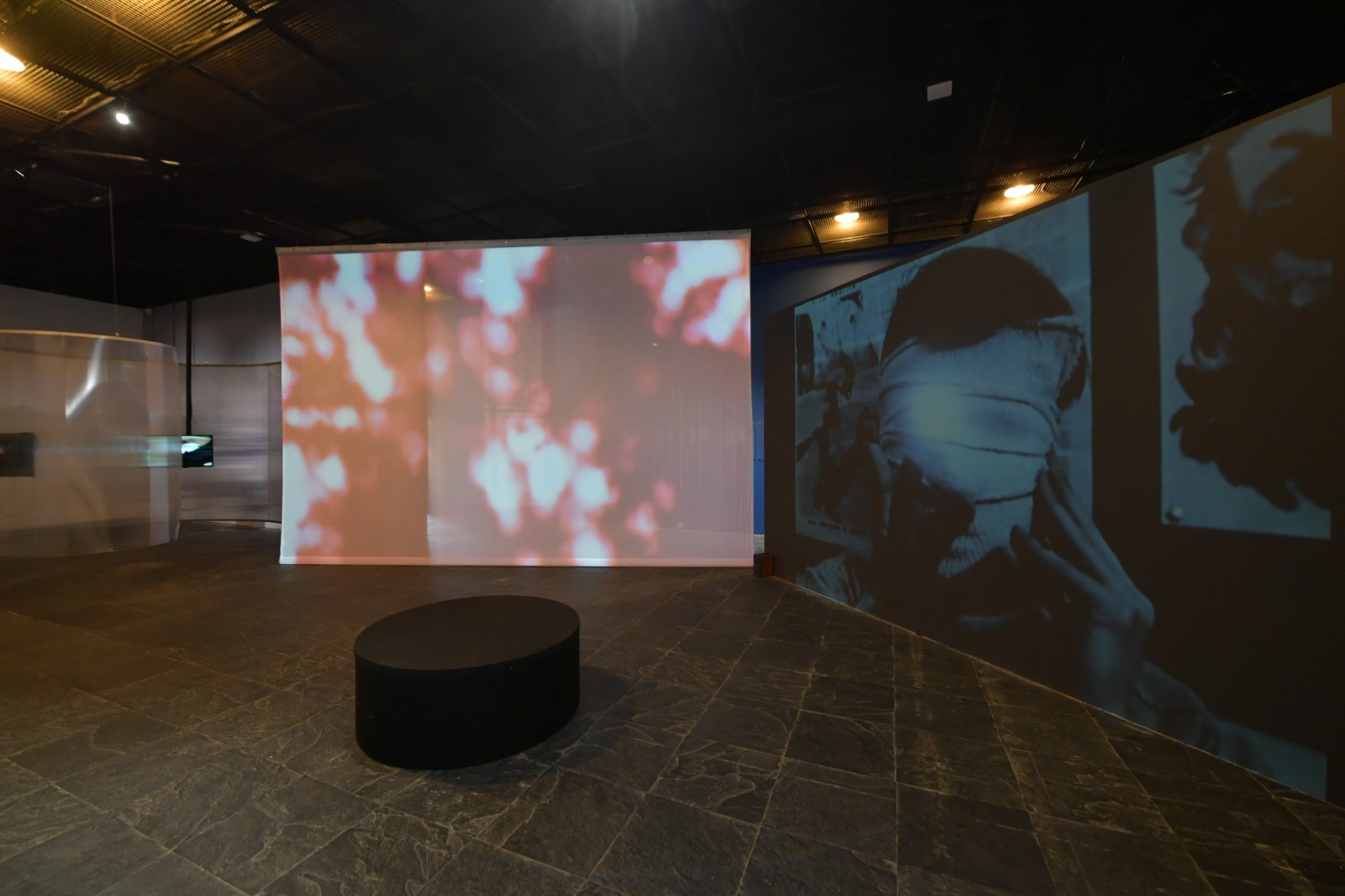 空間與空間的交疊、空間中的空間以作品圖像、檔案重建與場(chǎng)景搭建等形式,散落于展覽的各個(gè)角落之中。陳淑瑜在開(kāi)幕式的視頻致辭中提到:“展覽是關(guān)于藝術(shù)作品看不見(jiàn)的本質(zhì),是我們用藝術(shù)作品可見(jiàn)的實(shí)體部分去建構(gòu)展覽的空間,去容納內(nèi)心不可見(jiàn)的部分。對(duì)我來(lái)說(shuō),這是展覽的意義,也是展覽的開(kāi)始?!盵8]