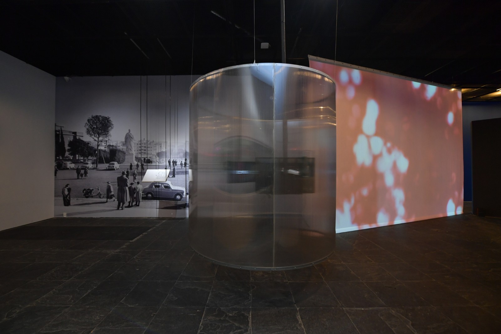 臺(tái)階的最上方引導(dǎo)著觀(guān)眾走向迷宮的“出口”——那是一個(gè)陽(yáng)臺(tái),它被認(rèn)為跨越了私人領(lǐng)域和公共領(lǐng)域之間的那條不甚明晰的界限。人們?cè)诘巧详?yáng)臺(tái)的那一瞬間,目之所及的是胡偉呈現(xiàn)的“廣場(chǎng)”。在《為公共口口(邂逅),提案》中,胡偉對(duì)自己家鄉(xiāng)的廣場(chǎng)進(jìn)行了調(diào)研,廣場(chǎng)中心紀(jì)念碑雕塑的拆除背后是對(duì)一段宏觀(guān)歷史的回顧,展柜中陳列的文獻(xiàn)材料,3D打印復(fù)原的紀(jì)念碑與噴泉,都以一種最傳統(tǒng)的方式印證著這段歷史的發(fā)生與存在。而在面向陽(yáng)臺(tái)的視頻圖像語(yǔ)境中,胡偉通過(guò)鏡頭的聚焦切換與角度變化,在宏觀(guān)的歷史背景外,其似乎在試圖提煉除一種模糊的普遍性,其適用于廣泛的公共空間與集體記憶,卻與人們的個(gè)體記憶都有不謀而合之處,但又難以捕捉,“沒(méi)有面目,也無(wú)人認(rèn)領(lǐng)”。