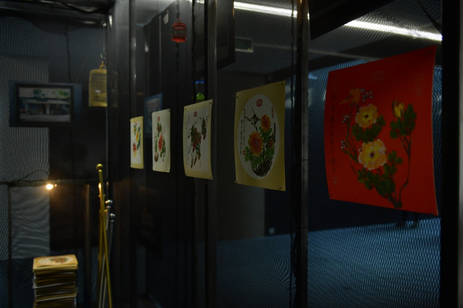 有趣的是,在陳淑瑜與未建筑設(shè)計(jì)研究所共同設(shè)計(jì)的“迷宮”裝置中,陳淑瑜以策展的方式又介入了耶丁的這段創(chuàng)作經(jīng)歷中。進(jìn)入暗室中的迷宮,觀(guān)眾沿著旋轉(zhuǎn)的樓梯向上前行,一路遇到的老照片,帶有時(shí)代氣息的畫(huà)作,被置于凹陷空間深處的視頻,以及需要置身于“洞穴”中去傾聽(tīng)的獨(dú)白,都昭示著一種極強(qiáng)的私密性,在不見(jiàn)光亮的迷宮中,人們?cè)讵M窄而形態(tài)怪誕的通道中甚至無(wú)法錯(cuò)開(kāi)身來(lái),被迫與他人“分享”私密。