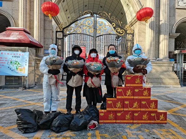 黑龍江經(jīng)濟(jì)網(wǎng)訊(靳超 記者崔冰)慰問(wèn)暖人心,關(guān)懷顯真情。2月3日,黑龍江省誠(chéng)信建設(shè)促進(jìn)會(huì)會(huì)長(zhǎng)張波、副會(huì)長(zhǎng)于海波帶領(lǐng)秘書處人員來(lái)到哈市榮耀天地小區(qū)看望慰問(wèn)堅(jiān)守在抗疫一線的寶宇物業(yè)管理有限公司的工作人員,傳遞殷切關(guān)懷。張波會(huì)長(zhǎng)和物業(yè)工作人員們深入交流,詳細(xì)了解了他們近期的工作和生活情況,并為他們送來(lái)紅腸及由哈爾濱市萬(wàn)花集鮮花店捐贈(zèng)的鮮花等物資。