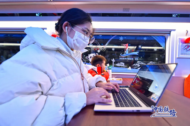 藍(lán)色的燈光、潔白的雪花、絢麗動(dòng)感的車窗貼紙……在京張高鐵服役的復(fù)興號(hào)智能動(dòng)車組將冬奧元素、運(yùn)動(dòng)精神和鐵路文化融為一體。