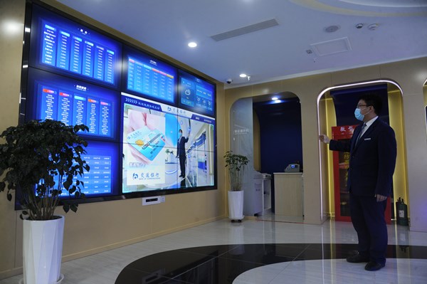 記者看到,智能網(wǎng)點既適老也適小。在互動體驗區(qū),由9塊顯示屏拼接而成的屏幕區(qū)格外引人注意。顯示屏分別顯示著網(wǎng)點的理財產(chǎn)品、營銷數(shù)據(jù)等,每15分鐘就會進(jìn)行一次更新。不僅如此,客戶還可以在這里玩游戲、拍照片。李權(quán)介紹,很多時候,客戶的焦慮來自等待,一些帶著孩子來辦理業(yè)務(wù)的客戶,最怕小朋友無聊,通過互動體驗區(qū),小朋友可以在屏幕前玩游戲,這樣客戶辦理業(yè)務(wù)時也能更安心。“我們的服務(wù)區(qū)域用來滿足客戶日常業(yè)務(wù)辦理需求,而游戲、特色景點、交通、美食等混業(yè)信息的交互則能消除顧客的等候焦慮?!崩顧?quán)說道。