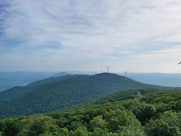 饒河縣遠(yuǎn)處的青山和風(fēng)力發(fā)電機(jī)