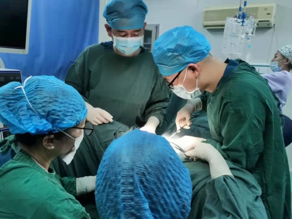 據(jù)劉曉麗主任介紹,剖宮產(chǎn)術(shù)后子宮瘢痕妊娠(CSP)是嚴(yán)重威脅有剖宮產(chǎn)史的妊娠期女性患者的急危重癥。因其起病急、病情復(fù)雜、對影像學(xué)檢查要求高,極易誤診,治療中易造成難以控制的大出血、子宮破裂、周圍臟器損傷等并發(fā)癥,嚴(yán)重威脅女性的生殖健康甚至生命安全。CSP的發(fā)生率占有剖宮產(chǎn)史女性的1.15%,近幾年隨著“三胎”政策的開放,其發(fā)生率逐年快速增高,越來越引起臨床醫(yī)生的重視。該病的搶救需要婦科、介入科、影像學(xué)等多學(xué)科緊密協(xié)作,掌握嫻熟的婦科腔鏡、陰式及開腹手術(shù)技巧,組建能夠快速反應(yīng)的搶救團(tuán)隊(duì),對醫(yī)院的整體醫(yī)療及搶救水平有較高要求。劉曉麗主任帶領(lǐng)的婦三科團(tuán)隊(duì),聯(lián)合醫(yī)院介入科、影像科、麻醉科、腔鏡手術(shù)室等多學(xué)科合作,不斷嘗試攻克婦科危重疑難病例及手術(shù),為保留女性生育功能,維持女性生殖完整性而不斷努力學(xué)習(xí)、嘗試。