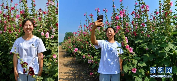 拼版照片:左圖為杜云芝在太原市小店區(qū)王吳村鮮花種植基地;右圖為杜云芝在鮮花種植基地進行直播(7月7日攝)。今年30歲的杜云芝外出務工近10年,作為一名資深銷售人員,她有著豐富的直播經驗。近年來,太原市小店區(qū)王吳村大力發(fā)展鄉(xiāng)村旅游,杜云芝回到家鄉(xiāng),用手機記錄鄉(xiāng)村變化,宣傳家鄉(xiāng)美景。