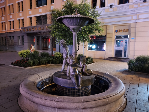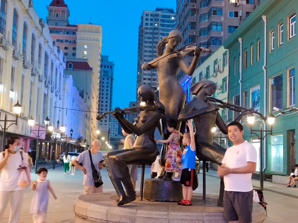 哈爾濱市中央大街是聞名全國的網紅打卡地,輔街上的雕像也為這座城市增添了幾分神韻。祝東 攝