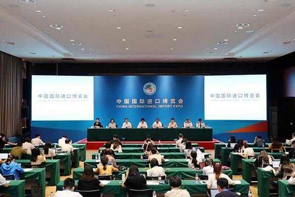這是第四屆進(jìn)博會(huì)開(kāi)幕倒計(jì)時(shí)100天新聞通氣會(huì)現(xiàn)場(chǎng)(7月26日攝)。新華社記者 方喆 攝
