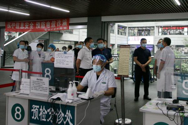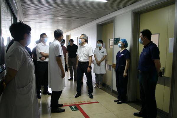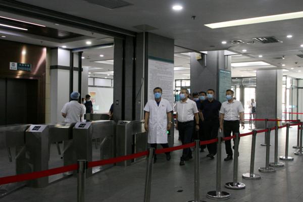 趙煒明一行先后到附屬第一醫(yī)院門診預(yù)檢分診處、呼吸科門診、耳鼻咽喉科門診、心血管病一科病房等處進行實地檢查,并聽取附屬第一醫(yī)院黨委書記李建民關(guān)于院感防控工作的詳細匯報。