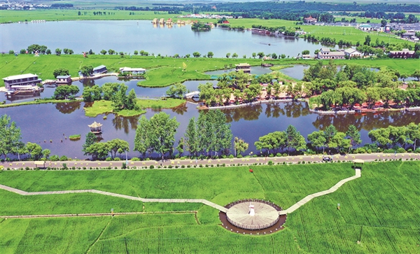 隱藏在綠水田中的大慶市林甸縣四合鄉(xiāng)聯(lián)合村,是一幅移步換景的畫(huà)卷,廣闊無(wú)垠的草原,鮮花、野草點(diǎn)綴其間,繪就出這里獨(dú)具個(gè)性魅力的濕地原生態(tài)景觀。采摘、騎車(chē)、釣魚(yú),或閉上眼睛靜聽(tīng)四周的鳥(niǎo)鳴聲、田邊的流水聲以及青禾的搖曳聲,放松又解壓。