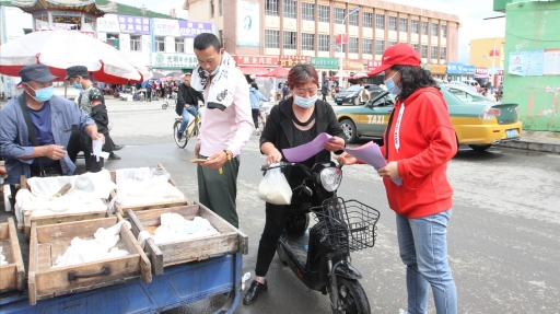 為使疫情防控宣傳達(dá)到家喻戶曉、人盡皆知的效果,圖強林業(yè)局黨委宣傳部靈活運用電視媒體、喇叭音頻宣傳防疫知識,利用圖強微媒下發(fā)《關(guān)于進(jìn)一步嚴(yán)明疫情防控工作紀(jì)律的通知》;通過微信、抖音等移動客戶端發(fā)送《疫情仍在,請勿放松》宣傳畫,運用PPT短視頻發(fā)布防控德爾塔變異毒株注意事項。同時,結(jié)合實際,針對不同層面,組織志愿者深入到管護(hù)區(qū)、檢查站幫助值班人員對過往車輛、人員進(jìn)行掃健康碼、測量體溫、督促戴口罩;到市場人員密集場所發(fā)放防疫宣傳單。文體辦利用大型電子屏和LED屏滾動播放疫情防控視頻和宣傳口號,在商場超市、住宿賓館等利用廣播等循環(huán)播放音頻素材,在居民區(qū)出入口設(shè)置條幅,全面提高全民防疫意識,斬斷疫病傳播通道。