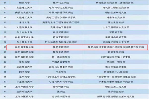 黑龍江經(jīng)濟(jì)網(wǎng)訊(全媒體見(jiàn)習(xí)記者 董廣碩 商祺)近日,教育部公布第二批全國(guó)高校“百個(gè)研究生樣板黨支部”和“百名研究生黨員標(biāo)兵”單位名單,哈爾濱工程大學(xué)船舶學(xué)院船舶與海洋工程結(jié)構(gòu)力學(xué)研究所碩博第三黨支部,以及智能學(xué)院博士研究生李明非榜上有名!