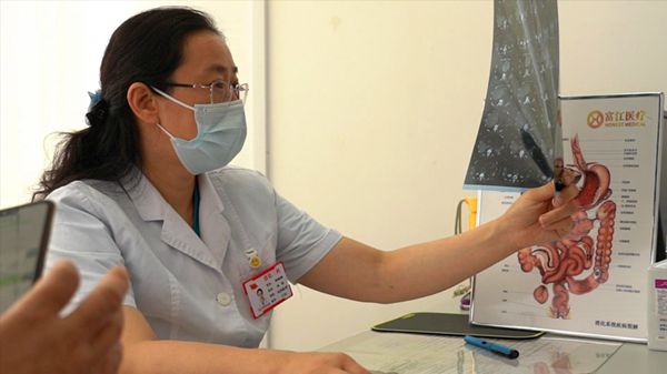 經(jīng)過治療,小李體力有所恢復(fù),無發(fā)熱,腹痛腹瀉好轉(zhuǎn),于是為他安排了一系列的相關(guān)檢查。腸鏡檢查過程中乙狀結(jié)腸狹窄內(nèi)鏡不能通過;CTE見腸管多處狹窄及活動性病灶。根據(jù)檢查結(jié)果,孫曉梅主任決定用鼻胃管管飼營養(yǎng)制劑幫助患者改善營養(yǎng)狀態(tài),并應(yīng)用生物制劑控制炎癥反應(yīng)。李銳副主任醫(yī)師開始根據(jù)小李體重精確計(jì)算他每日所需熱量,確定管飼營養(yǎng)制劑種類、營養(yǎng)方式及速度,每天查房時,仔細(xì)詢問小李病情、查體,完善實(shí)驗(yàn)室檢查,經(jīng)過一周的腸內(nèi)營養(yǎng),小李體重成功增加了1公斤,家屬扶著可以在床邊活動。
