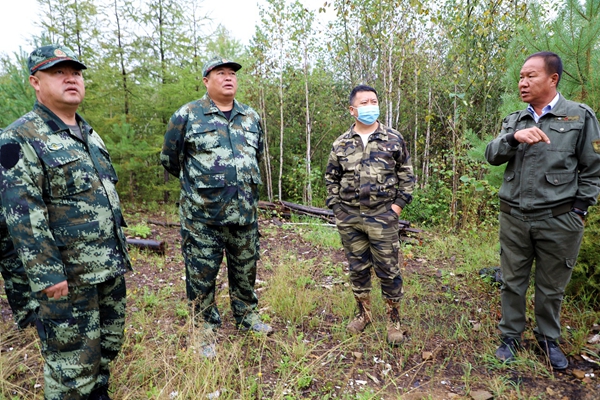 林業(yè)局黨委書(shū)記胡守慶(左二)深入檢查指導(dǎo)改造管護(hù)站安全施工工作。