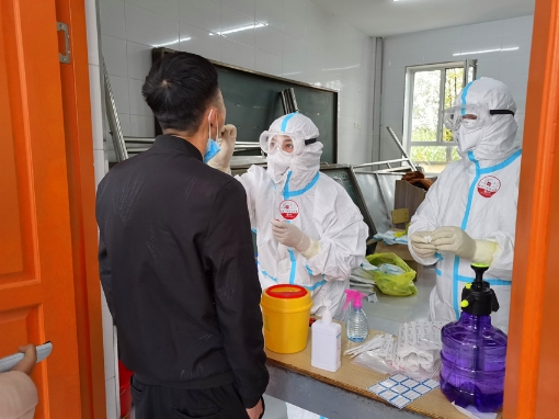 分到黑山鎮(zhèn)核酸采集的21名隊員,則由張艷護士長帶隊,當(dāng)?shù)匾褯]有20人以上接待能力的賓館,支援隊伍在鎮(zhèn)衛(wèi)生院的病房臨時休整4個小時后,集體出發(fā)到黑山鎮(zhèn)下設(shè)的50個村屯進行核酸采集工作。