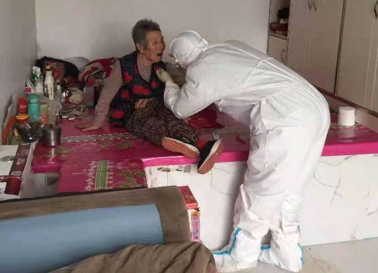 巴彥縣核酸采集現(xiàn)場還活躍著省醫(yī)院健康管理中心疾病康復(fù)部工作人員的身影,護士長李曉莉率先垂范,發(fā)揮黨員先鋒模范作用,帶隊“出征”;隊員徐賢紅克服低血鉀、全身無力等困難,積極參戰(zhàn);隊員林虹則空腹血糖達10mmol/L,帶著胰島素請求“參戰(zhàn)”。三人早晨7點開始核酸采集工作,深入到各個鄉(xiāng)鎮(zhèn)村屯,更將核酸采集工作延伸到老鄉(xiāng)家中,為臥床及行動不便的人進行核酸采集工作,中飯和晚飯都是快速的吃一口盒飯或者泡面就地解決,然后又迅速投入到工作中。據(jù)了解,疾病康復(fù)部人均年齡都在50歲左右,此次抗疫所有的同事都克服自身重重困難,為完成使命,勇往直前,盡顯龍醫(yī)人的本色。