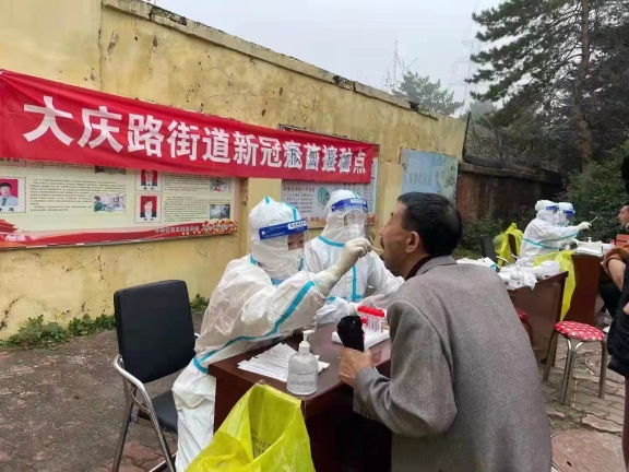 感人的事跡還有很多很多,醫(yī)院二十六病區(qū)護(hù)士孫立會,是一名今年年底就要退休的高年資護(hù)士,一直堅守在臨床一線,當(dāng)聽到需要下社區(qū)支援采集核酸,積極報名主動提出上夜班崗,在晚上打車前往社區(qū)替換白班同事時,出租車師傅聽說是去給市民采集核酸,下車時堅決拒收車費(fèi);護(hù)理部護(hù)士長王爽也將年邁生病的母親托付給別人照看,全身心的投入到了核酸采集工作中;由于人手緊張,醫(yī)院行政后勤工作人員也都積極加入到了核酸采集工作當(dāng)中,短短幾天共派出近50名有醫(yī)護(hù)資質(zhì)的機(jī)關(guān)干部前往社區(qū)為群眾采集核酸。