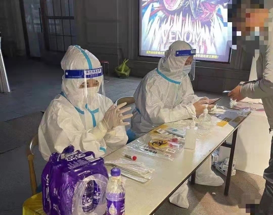 在做好發(fā)熱門診本職工作的同時(shí),護(hù)理團(tuán)隊(duì)還全力支援社區(qū)全員采集核酸任務(wù)。有的同志在忙碌了一夜夜班后,連家都沒回,又立刻投身到核酸采樣任務(wù)中。時(shí)間緊任務(wù)重,經(jīng)常早上4、5點(diǎn)鐘就要出發(fā)集合去采樣地點(diǎn),直到晚10點(diǎn)左右才結(jié)束工作。采樣地點(diǎn)多在室外,氣溫低,更是放棄了吃飯休息的時(shí)間,爭分奪秒地為一個又一個居民采樣。長達(dá)十幾個小時(shí)的高壓工作,導(dǎo)致肩頸、手腕損傷,但就算這樣,也從未有人下“戰(zhàn)場”。