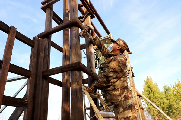 圖為阿木爾林業(yè)局黨員干部職工為興安林場精品民宿大門“美顏”,為安裝“得勝營”牌匾做準(zhǔn)備。王力 攝