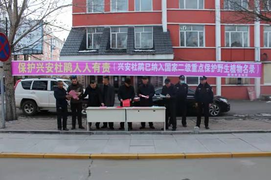 會后,所有與會人員參加了由森林資源管理科舉辦的“保護野生興安杜鵑人人有責”宣傳活動,對快遞公司、山產品店、檢查站、配貨站、市場及過往車輛進行宣傳,并呼吁經營業(yè)主參與到保護野生興安杜鵑行動中來,不收購、不運輸、不銷售野生興安杜鵑,堅決把牢物流運輸關口。