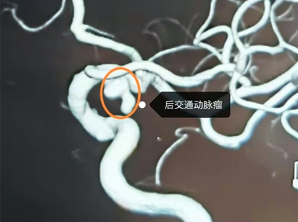 據(jù)省醫(yī)院神經(jīng)外一科孫國章副主任介紹,張大娘是一位聾啞人,今年69歲,在臨近中秋節(jié)的時(shí)候突然出現(xiàn)不明原因的輕微頭痛,當(dāng)時(shí)家屬并未太過在意,但是三四天之后,張大娘就出現(xiàn)了右側(cè)眼睛睜不開的癥狀,家人這才領(lǐng)著張大娘前往黑龍江省醫(yī)院就診。張大娘入院時(shí),已經(jīng)有頭痛、眼瞼上提障礙等表現(xiàn),很有可能是后交通動(dòng)脈瘤導(dǎo)致,隨即給予張大娘完善了頭部CT平掃及CTA血管檢查。果然,頭部CTA檢查明確顯示右側(cè)頸內(nèi)動(dòng)脈-后交通段有動(dòng)脈瘤樣異常凸起,動(dòng)脈瘤導(dǎo)致相鄰的動(dòng)眼神經(jīng)受壓,引發(fā)動(dòng)眼神經(jīng)麻痹,才讓張大娘出現(xiàn)了眼睛不能睜開的癥狀。