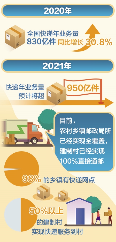 當(dāng)前,快遞年業(yè)務(wù)量以每年遞增100億件的速度持續(xù)高速增長(zhǎng)。據(jù)國(guó)家郵政局預(yù)測(cè),2021年快遞年業(yè)務(wù)量將超950億件。