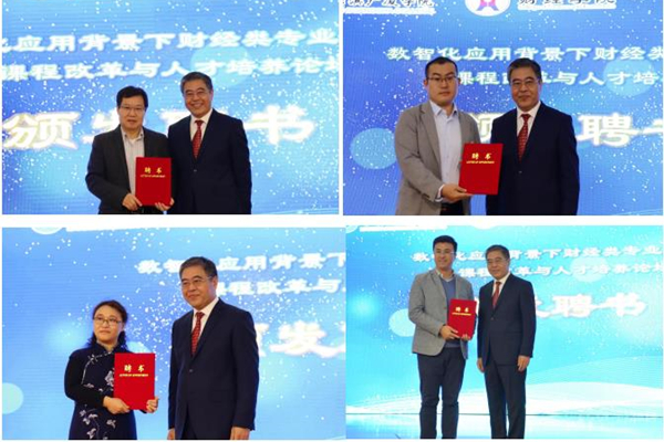 陳西峰為山東財(cái)經(jīng)大學(xué)會(huì)計(jì)學(xué)院院長(zhǎng)王愛(ài)國(guó)教授、華僑大學(xué)工商管理學(xué)院博士生導(dǎo)師楊洪濤教授、哈爾濱工程大學(xué)經(jīng)濟(jì)管理學(xué)院博士生導(dǎo)師楊忠海教授頒發(fā)客座教授聘書(shū),為財(cái)智未來(lái)(北京)教育科技有限公司總監(jiān)聶鑫、中聯(lián)集團(tuán)教育科技有限公司產(chǎn)教融合事業(yè)部總監(jiān)侯劉成頒發(fā)企業(yè)導(dǎo)師聘書(shū)。