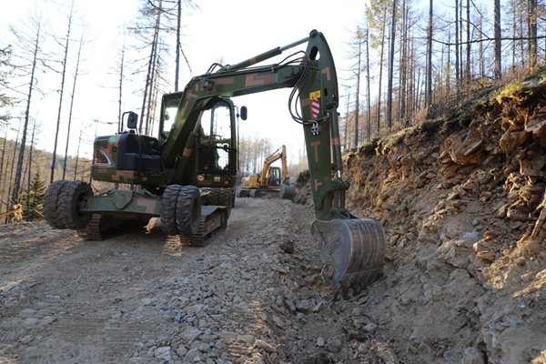圖為阿木爾林業(yè)局多種經營公司干部職工利用鉤機機械設備開挖2—1線新開通線路邊溝(王力/攝)