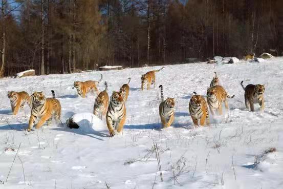 令人震撼的鏡泊湖吊水樓的冰瀑是牡丹江冬季的重要景點(diǎn)之一。在冰凌交錯(cuò)、銀裝素裹的純凈世界里,世界吉尼斯紀(jì)錄創(chuàng)造者——中國(guó)懸崖跳水奇人狄煥然,在零下二十多度的鏡泊湖吊水樓冰瀑上,伸展雙臂,凌空一躍,撲向不結(jié)冰的黑龍?zhí)端?,跳入落差?0米的水中,成為鏡泊湖景區(qū)冬季的一道獨(dú)特景觀。鏡泊湖水系水質(zhì)較好,水產(chǎn)資源極為豐富,大約有六十多種魚,冬季體驗(yàn)鏡泊湖的大網(wǎng)捕魚、小網(wǎng)掛魚,在每年辭舊迎新之際看一場(chǎng)冬捕,絕對(duì)是預(yù)示著年年有余好兆頭的絕佳體驗(yàn)。在漁夫們高亢的號(hào)子聲中,800多米長(zhǎng)的大網(wǎng)從冰洞中漸漸滑出,胖頭魚、鯽魚、鯉魚等翻滾著、跳躍著,冒著熱氣蹦到冰面,“萬尾鮮魚出玉門”的奇觀景象讓人感嘆不已。橫道東北虎林園是世界上最大的東北虎人工飼養(yǎng)繁育基地和野化訓(xùn)練基地。在幾代養(yǎng)虎人的辛勤努力下,已繁育活體東北虎1100余只,建有猛虎園、靈長(zhǎng)類館、幼虎生態(tài)館、高空玻璃棧道、珍稀動(dòng)物觀賞園、科普展覽館、觀虎長(zhǎng)廊、虎文化廣場(chǎng)等多個(gè)景點(diǎn)。在這里,可以感受到獸中之王奔跑在蒼茫林海雪原的風(fēng)馳電掣。也可以感受到成群東北虎躺臥在皚皚白雪“互談心事”的百般愜意,還可以領(lǐng)略到虎牛相斗、群虎撲食的驚險(xiǎn)刺激。
