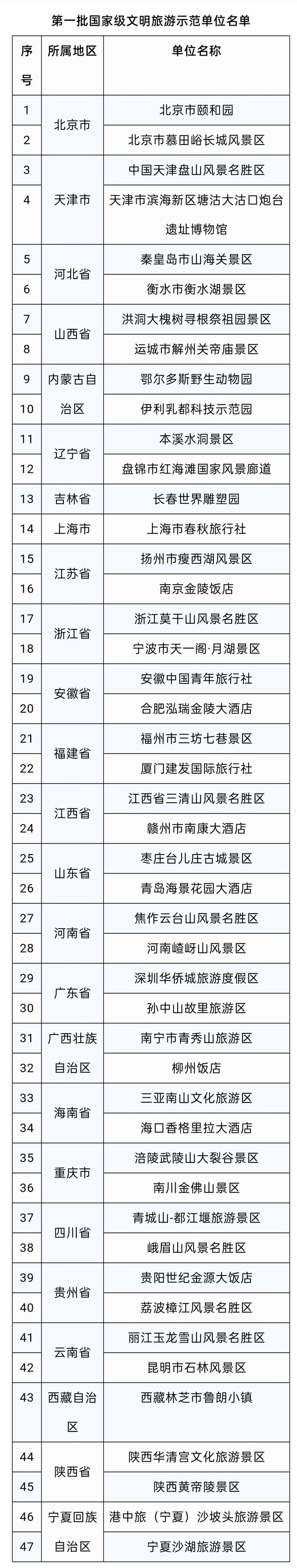 新華網(wǎng)訊(記者 余俊杰)記者18日從文化和旅游部獲悉,經(jīng)自愿申報(bào)、省級(jí)文化和旅游行政部門審查推薦、全國(guó)旅游標(biāo)準(zhǔn)化技術(shù)委員會(huì)最終評(píng)定后,認(rèn)定北京市頤和園等47家單位達(dá)到國(guó)家級(jí)文明旅游示范單位標(biāo)準(zhǔn)。