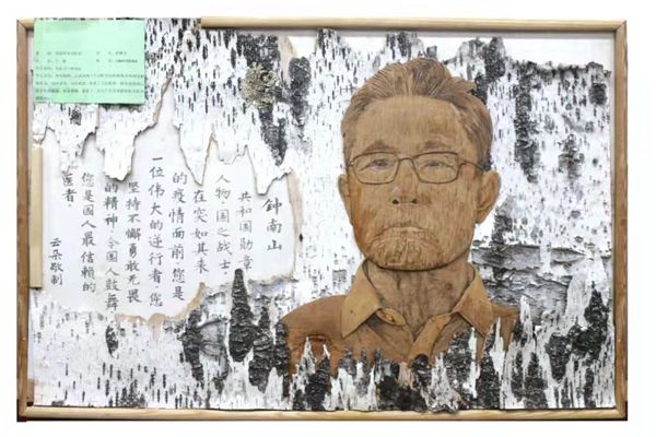 作品“生命衛(wèi)士鐘南山”采用大興安嶺原始森林優(yōu)質(zhì)樺樹皮粘貼而成,畫中鐘南山院士表情凝重,目光堅(jiān)毅,展現(xiàn)了一名共產(chǎn)黨員面對疫情無私奉獻(xiàn)的決心。作品“蘭閨雅集圖”,情致盎然、祥和靈動,給人以和諧、溫馨,讓人心生美好。