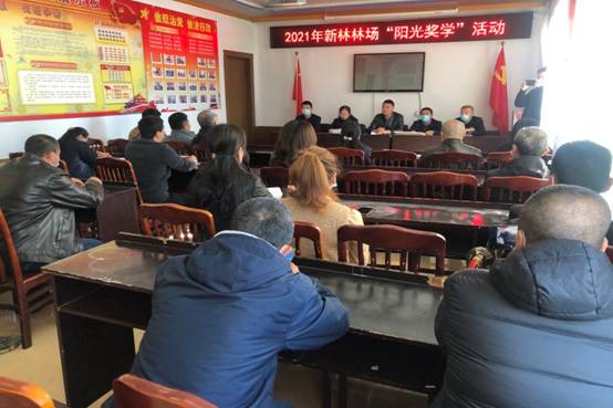 圖為新林林場班子成員為職工發(fā)放陽光獎學金(楊光 攝)