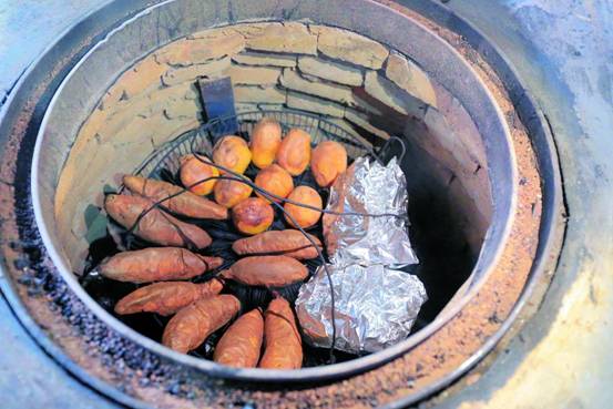 坑烤,顧名思義就是將食物放入坑內(nèi)烤熟,是大慶的地方特色美食,也是一代人質(zhì)樸的美食記憶??涌境鰜?lái)的五花肉,外表焦酥,入口煙香縈舌,脂油洇出,極為解饞,坑烤之后的雞鴨,多了份淡淡的松木味、鄉(xiāng)野味,坑烤后的鵝蛋蛋黃金黃耀眼,蛋青透亮,入口嚼勁十足。