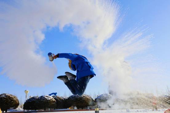 在三江口生態(tài)旅游區(qū)觀光塔上觀賞北國(guó)風(fēng)光、千里冰封、萬(wàn)里雪飄的壯美景觀,體驗(yàn)潑水成冰的神奇感受,將冰花四濺的瞬間捕捉在鏡頭中,印刻在腦海里。
