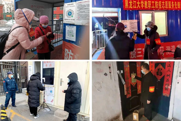 在這次疫情中,黑龍江大學(xué)面向全體教職工發(fā)出疫情防控志愿服務(wù)倡議,學(xué)校防疫辦、教師工作部、校工會(huì)、校區(qū)管理處等部門(mén)對(duì)這次志愿服務(wù)提前做好策劃安排,二級(jí)黨組織和部門(mén)工會(huì)積極配合廣泛宣傳動(dòng)員,黨員干部率先報(bào)名,教職工們積極響應(yīng),他們克服時(shí)間緊、冬季寒冷、年底工作量大等困難,參與熱情高漲,僅一天多時(shí)間就有60多人報(bào)名加入教師志愿服務(wù)隊(duì)伍。