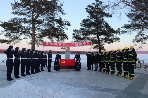呼瑪縣素有紅色邊疆的美譽(yù),共建聯(lián)盟前往呼瑪縣江邊第173號(hào)界碑,在莊嚴(yán)的黨旗和界碑下,呼瑪縣森林消防大隊(duì)黨委書記苗亮亮帶領(lǐng)全體黨員同志重溫了入黨誓詞,舉行集體宣誓儀式,旨在進(jìn)一步強(qiáng)化廣大應(yīng)急人的政治意識(shí),增強(qiáng)黨性觀念,筑牢政治忠誠,永葆紅色氣質(zhì)。