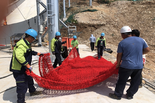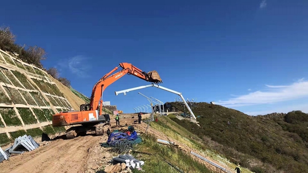 安裝完成的延慶賽區(qū)技術(shù)道路防護網(wǎng)。