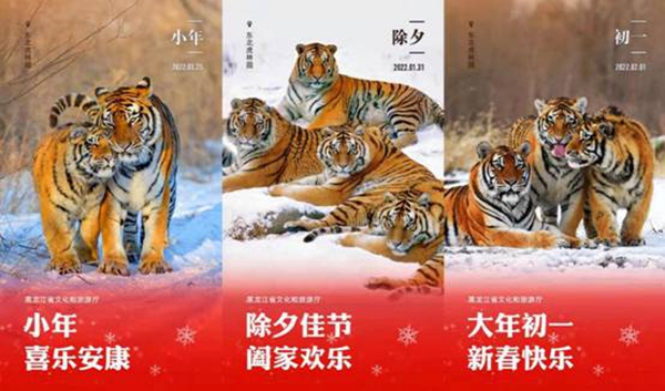 2022年是農(nóng)歷壬寅虎年,黑龍江省文旅廳適時提出“黑龍江——東北虎的故鄉(xiāng)”、“虎年就來黑龍江”等宣傳口號,通過系列海報、趣味表情包、互動H5、動漫短視頻、創(chuàng)意長圖等多種方式宣傳推廣冬季旅游產(chǎn)品。