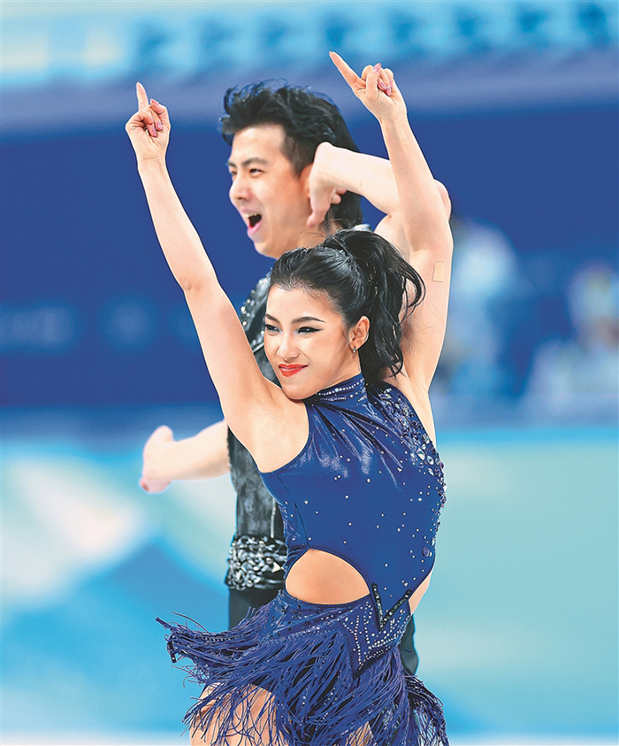 12日,北京2022年冬奧會(huì)花樣滑冰項(xiàng)目冰上舞蹈韻律舞比賽在首都體育館舉行,中國(guó)選手王詩(shī)玥(左)/柳鑫宇演繹貓王經(jīng)典旋律《trouble》,獲得73.41分,順利晉級(jí)自由舞比賽。