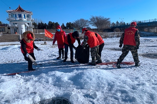 活動(dòng)中,森調(diào)隊(duì)15名志愿者們身著志愿者紅馬甲,手拎垃圾袋,走在濕地兩側(cè)一邊互相提醒,一邊認(rèn)真地?fù)焓坝慰蛠G棄在濕地周邊的礦泉水瓶、煙蒂、碎紙屑、塑料袋等生活垃圾。由于氣溫轉(zhuǎn)暖,冰面濕滑,給清理垃圾工作帶來一定難度,志愿者們克服困難,利用一個(gè)多小時(shí)的時(shí)間,還濕地周邊一片干凈、整潔的環(huán)境。