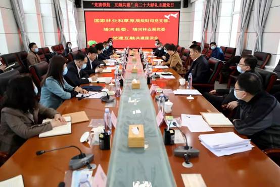 本次活動以黨建互融共建座談會拉開序幕。國家林業(yè)和草原局規(guī)財司二級巡視員郝雁玲在會上指出,按照國家林草局黨組對黨建聯(lián)系工作的要求,2021年9月,國家林草局規(guī)財司黨支部與塔河縣委、塔河林業(yè)局黨委簽署了黨建工作聯(lián)系協(xié)議,三方在重點工作互聯(lián)、工作機制互建、主題教育活動互辦、學習教育互動和干部人才互培等五個方面達成一致意見,規(guī)劃司黨支部結(jié)合塔河實際,深入挖掘政策潛力,在資金、項目以及林業(yè)生態(tài)保護修復和民生保障等方面上予以了相應支持。