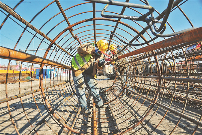 焊花飛濺、工程車來回穿梭……走進省級重點項目——北門街高架橋工程建設現(xiàn)場,施工人員有的綁鋼筋,有的輔助機器打樁,鉆頭飛轉,施工熱火朝天。