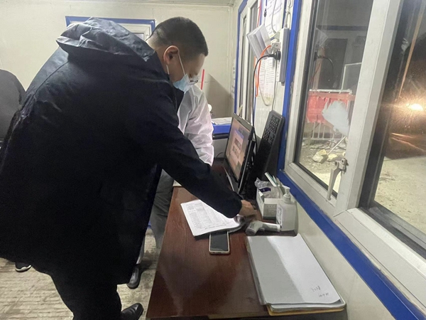 夜訪夜查工作組在公路卡口對入鎮(zhèn)人員信息、卡口消毒記錄、值班人員交接、值班人員是否在崗、是否飲酒等情況進行突擊檢查。隨后,夜訪夜查工作組又來到消防隊值班室,現(xiàn)場隨機詢問了值班人員應(yīng)急處理程序,并對消防值班人員在崗和消防設(shè)施運行等情況進行檢查。