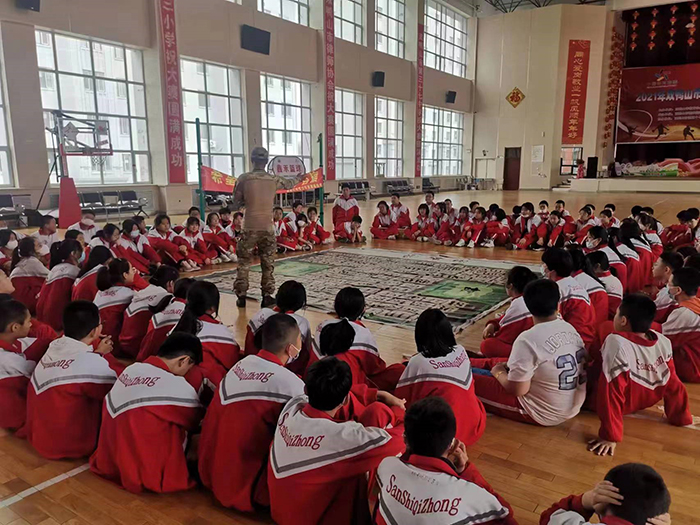 5月30日早8:00,初一學(xué)年100名學(xué)生分成四組開始了為期一天的拓展訓(xùn)練。拓展訓(xùn)練前,教練首先告訴同學(xué)們:軍人以服從紀(jì)律為天職,作為中國人應(yīng)懷著一顆感恩之心回報社會、建設(shè)祖國。