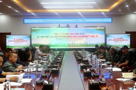 會議期間,傳達(dá)了《圖強(qiáng)林業(yè)局關(guān)于規(guī)范建設(shè)項目占用林地、自然保護(hù)地和濕地管理的通知》及資源管理工作相關(guān)要求,學(xué)習(xí)了《中華人民共和國濕地保護(hù)法》及相關(guān)濕地保護(hù)工作要求,圍繞濕地資源管理、濕地保護(hù)與利用、濕地修復(fù)、監(jiān)督檢查、法律責(zé)任等多個方面進(jìn)行了深入解讀。