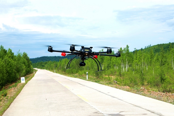 阿木爾林業(yè)局升起六旋翼無人機精準核查火場情況(王力 攝)