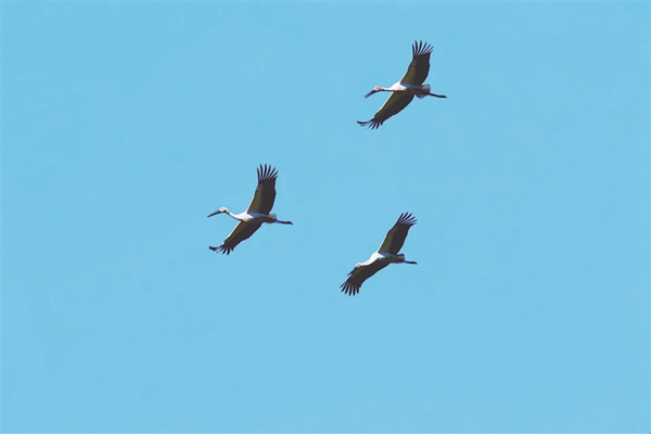 自由飛翔的白鸛。郭麗偉 付國(guó)新攝