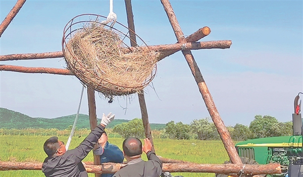 黑龍江日?qǐng)?bào)訊(王志弘 郭麗偉 黑龍江日?qǐng)?bào)全媒體記者吳樹江)近日,記者從北大荒集團(tuán)勝利農(nóng)場(chǎng)有限公司獲悉,濕地管理服務(wù)站的工作人員在撓力河國(guó)家級(jí)自然保護(hù)區(qū)勝利農(nóng)場(chǎng)境內(nèi)為東方白鸛搭建了30個(gè)人工招引巢,讓這些珍稀鳥類有了溫暖舒適的“新家”。
